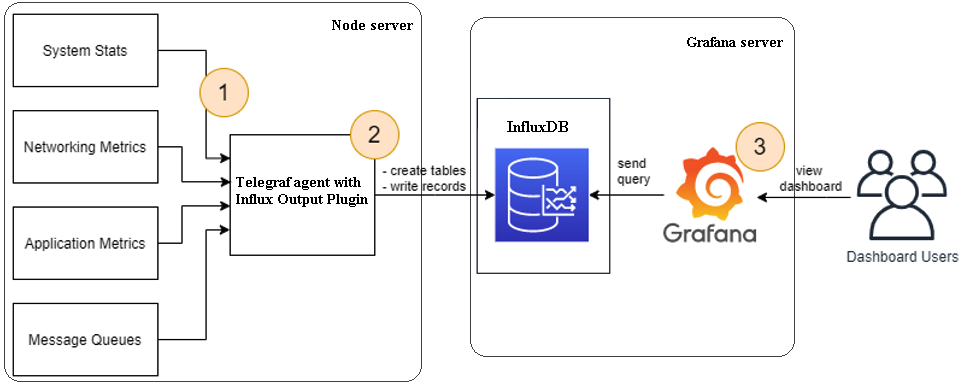 Telegraf is an agent written in Go for collecting performance metrics from the system it’s running on and the services running on that system. The collected metrics are output to InfluxDB or other supported data stores. From InfluxDB, you should be able to visualize trends and systems performance using tools like Grafana.