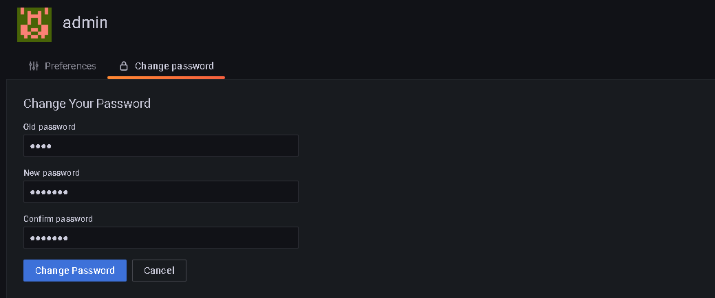 Remember to change admin password from default admin. Login and navigate to Preferences > Change Password: