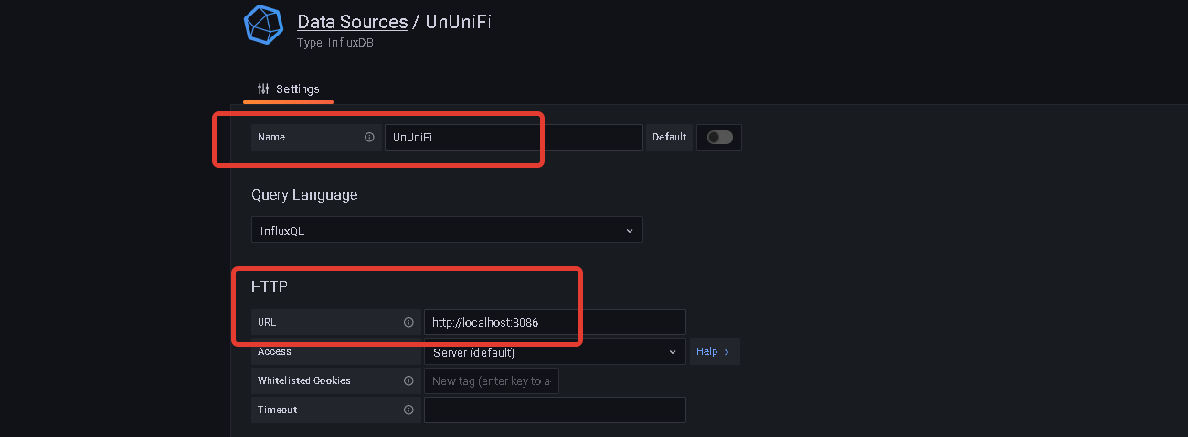 Login to Grafana and go to Configuration > Data Sources > Add data source > InfluxDB.